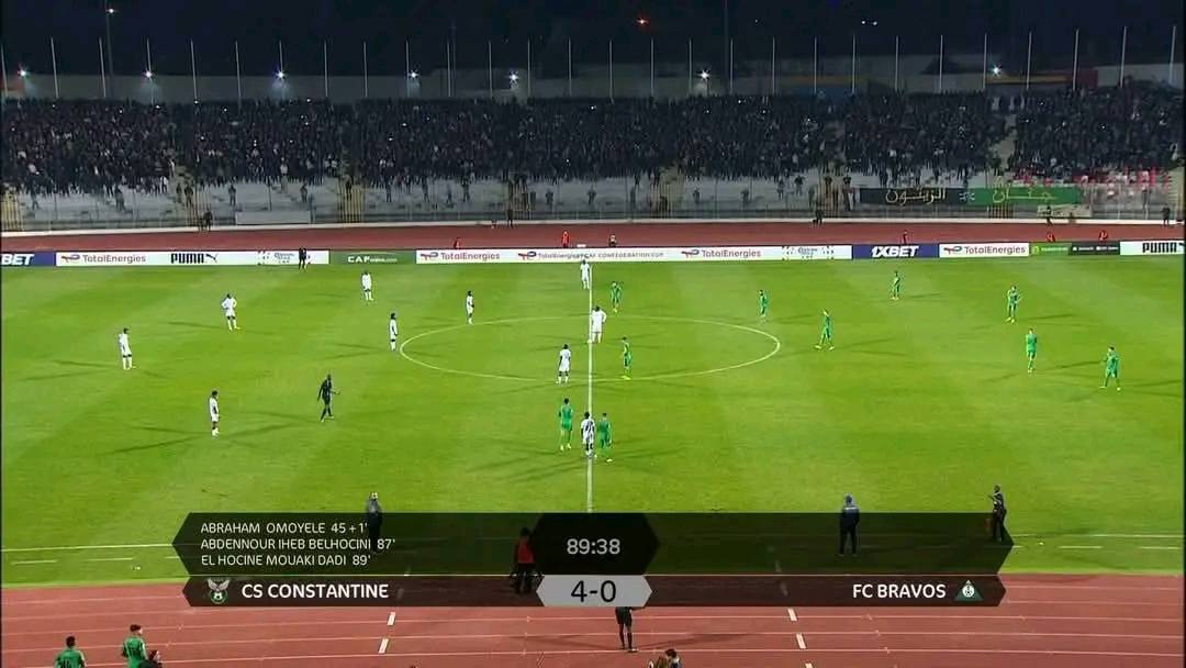 حقق شباب قسنطينة انتصاراً كاسحاً على ضيفه أونز برافوش الأنغولي بنتيجة أربعة أهداف نظيفة، في المباراة التي جمعت الفريقين على أرضية ملعب الشهيد حملاوي بقسنطينة، ضمن منافسات الجولة الرابعة من دور المجموعات لكأس الكونفدرالية الإفريقية.